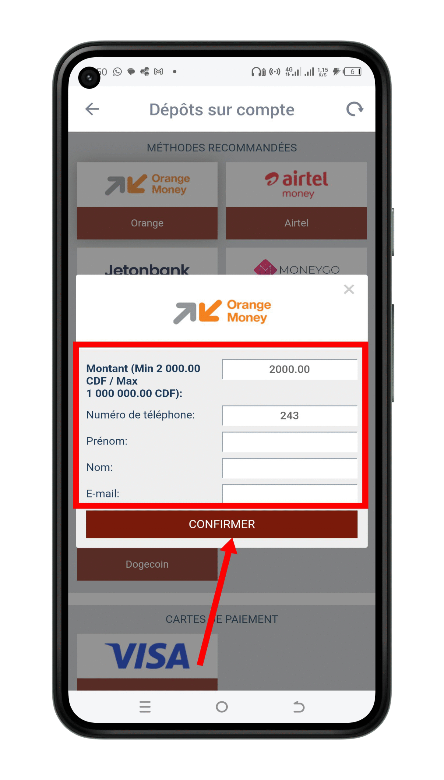 Étape 5: Confirmer le dépôt sur votre compte 888starz